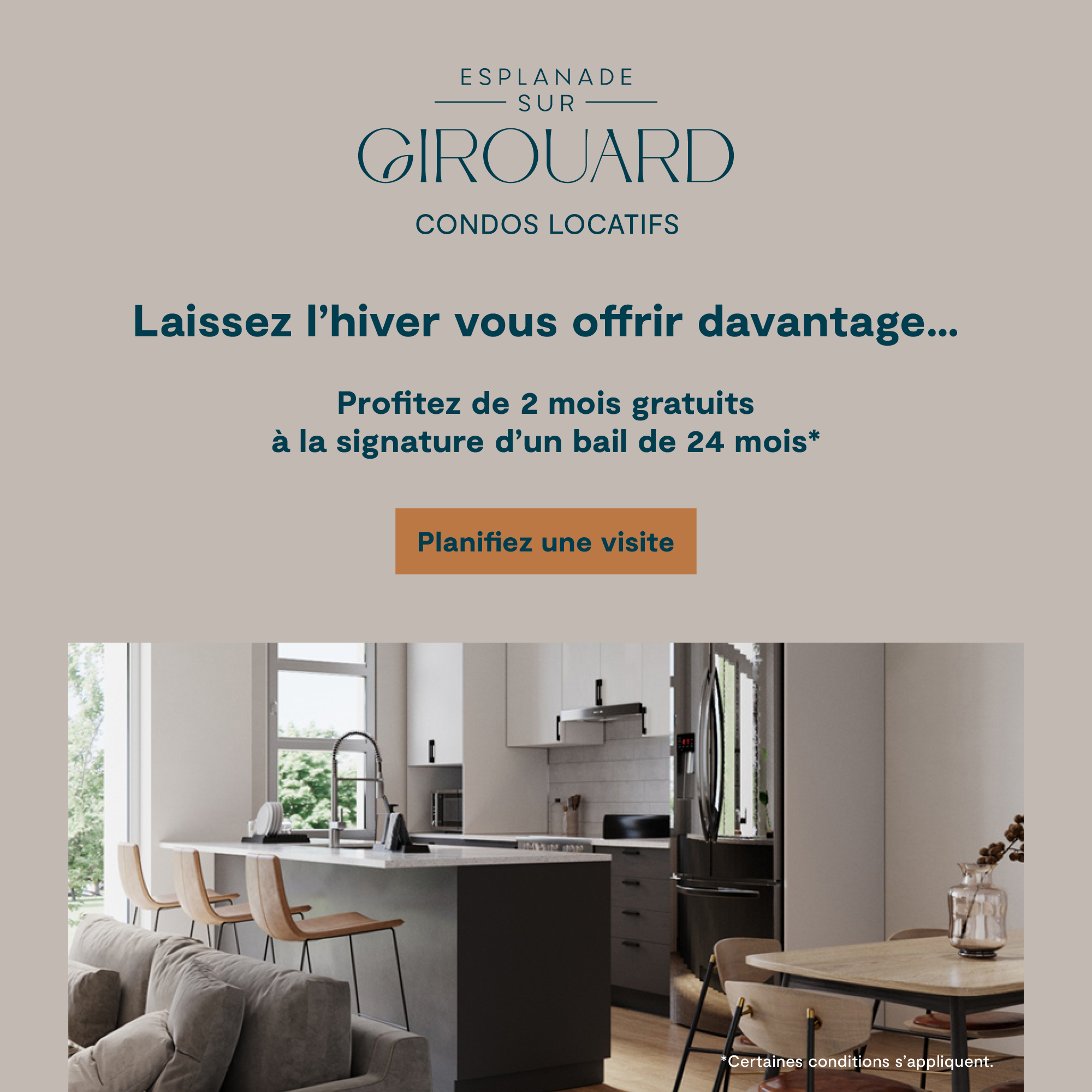 Esplanade sur Girouard vous offre le confort et l'espace d'un grand condo neuf locatif dans un environnement résidentiel calme et accessible pour profiter de ce qu'il y a de plus précieux : plus de temps pour vous et votre famille.