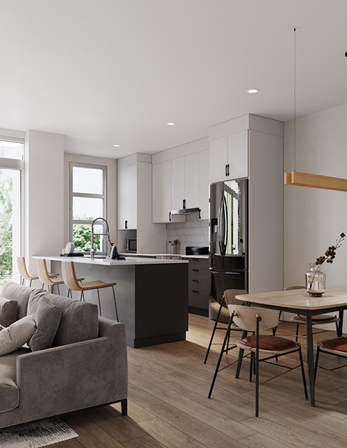 Esplanade sur Girouard est un petit immeuble convivial de seulement 12 unités au design contemporain et chaleureux,